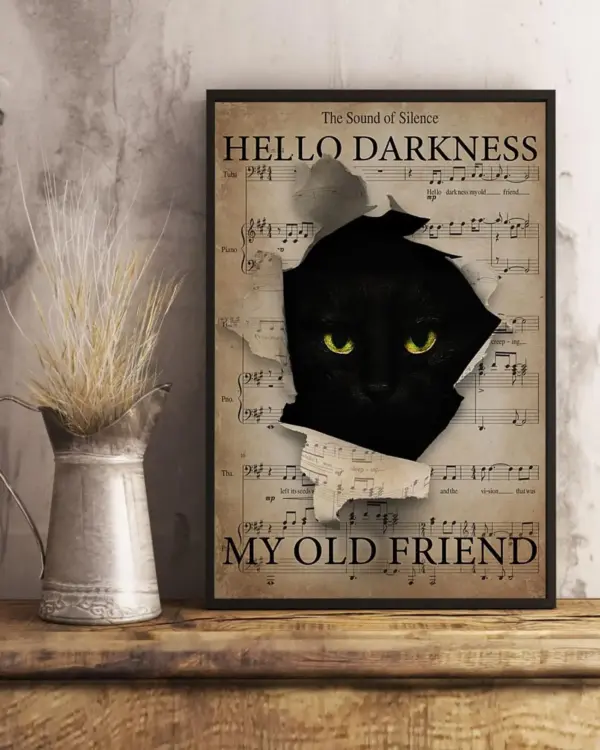 Cat Hello Darkness My Old Friend Poster Wall Poster Retro Style Funny Kitty Poster