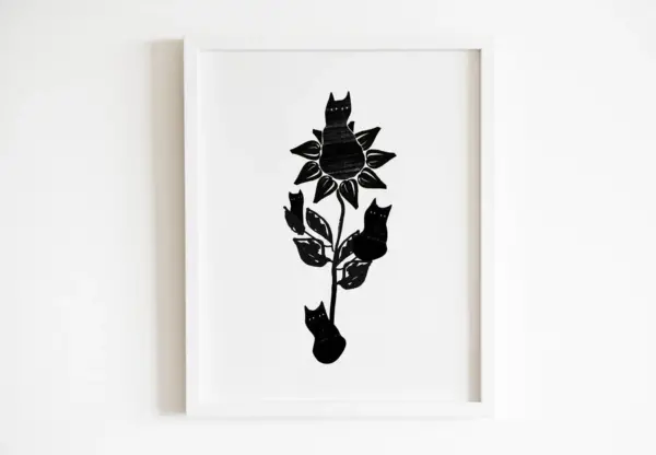 Cat Home Decor Art Print Cat Illustration Modern Art Cat Print Black Cat Decor Nursery Art Print Indoor Garden Botanical Print