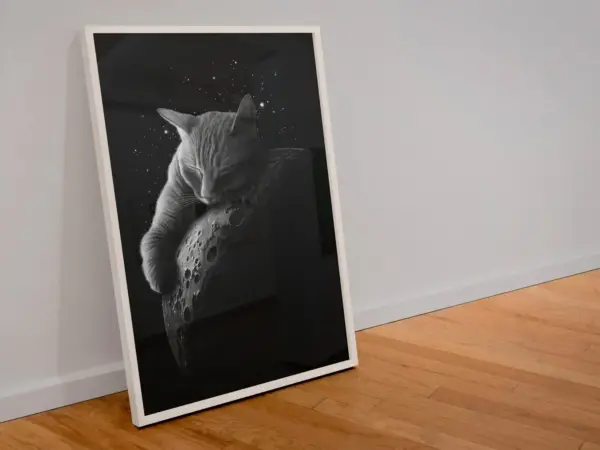 Cat Hugging Moon Poster - Space Cat Lover Wall Art Canvas
