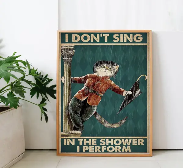Cat I Don T Sing In The Shower I Perform Poster Vintage Music Canvas Wall Art Gift For Music Lover Vinyl Wall Art Retro Music Poster