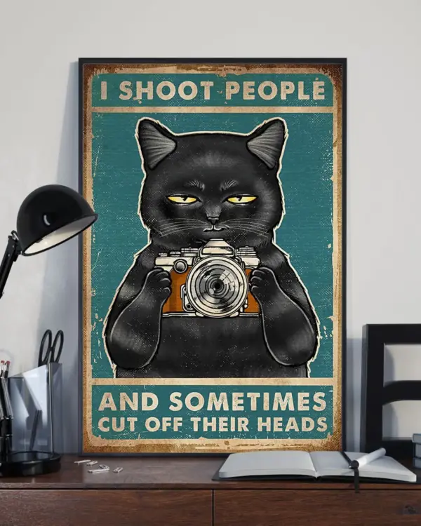 Cat I Shoot People Poster Wall Poster Retro Style Funny Kitty Poster