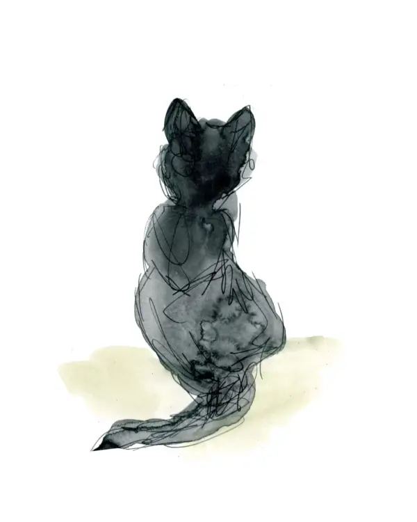 Minimalist Black Cat Wall Art Print - Cute Cat Poster