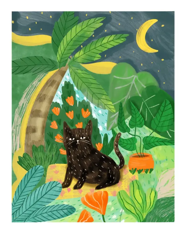 Cat Illustration Nursery Decor Cat Art Poster Animal Prints Cat Lover Gift Cat Mom Gift Botanical Print Tropical Art Jungle Print