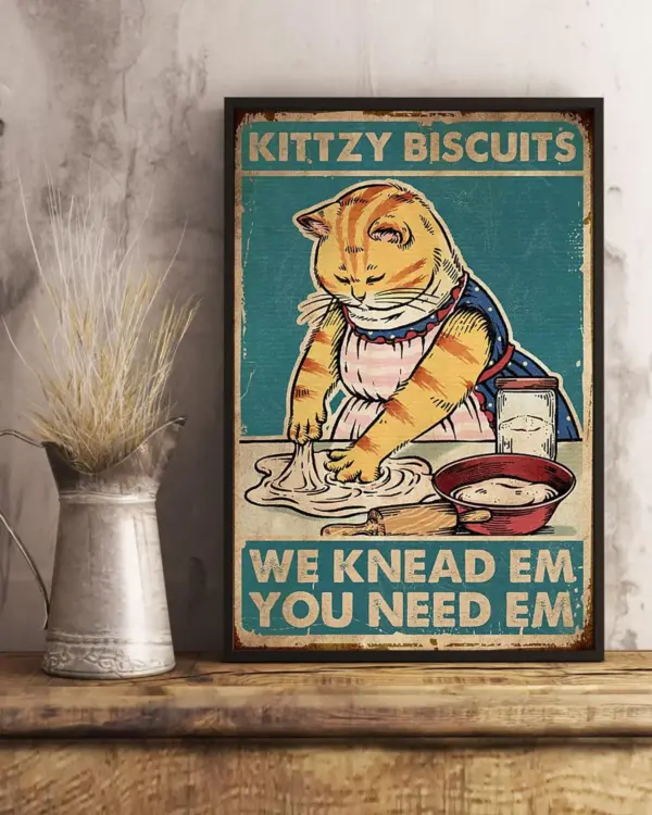 Cat Kittzy Biscuits Poster Wall Poster Retro Style Funny Kitty Poster