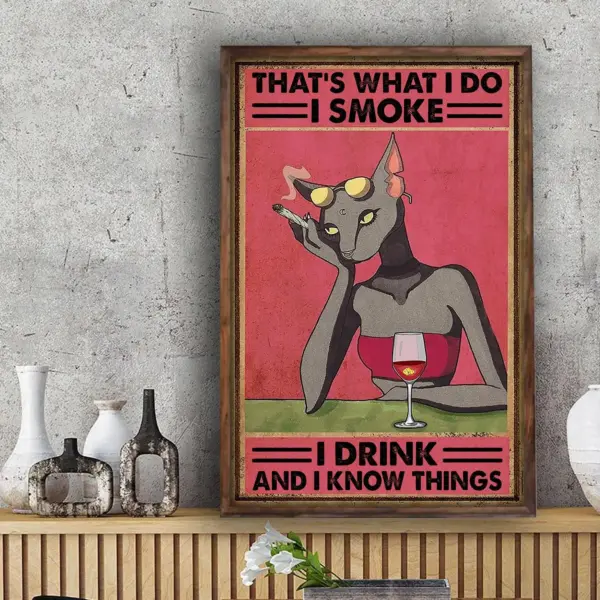 Sphynx Cat Smoking Poster - Cat Lady Home Decor