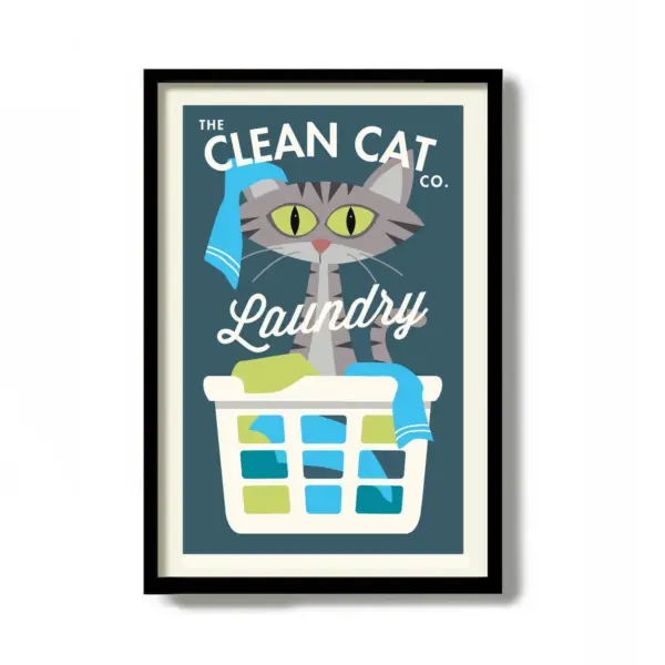 Cat Lover Gift Art Print Laundry Room Decor Gray Cat Tabby Cat Tiger Laundry Cat Mid Century Modern Washing Machine Cat Decor Cat Poster