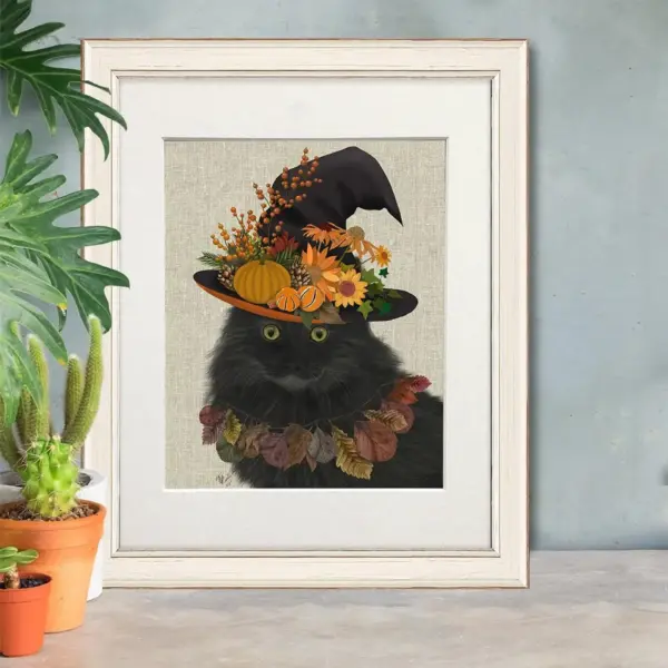 Cat Lover Gift Black Cat With Autumn Hat Portrait Cat Poster Gift Black Cat Print Cat Lady Gift Ideas Cat Wall Art Canvas Kitty Picture