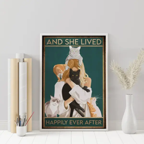 Cat Lover Poster And She Lived Happily Ever After Wall Art Veterinarian Home Decor Love Cat Gift For Cat Owner Cat Lady Poster No Frame
