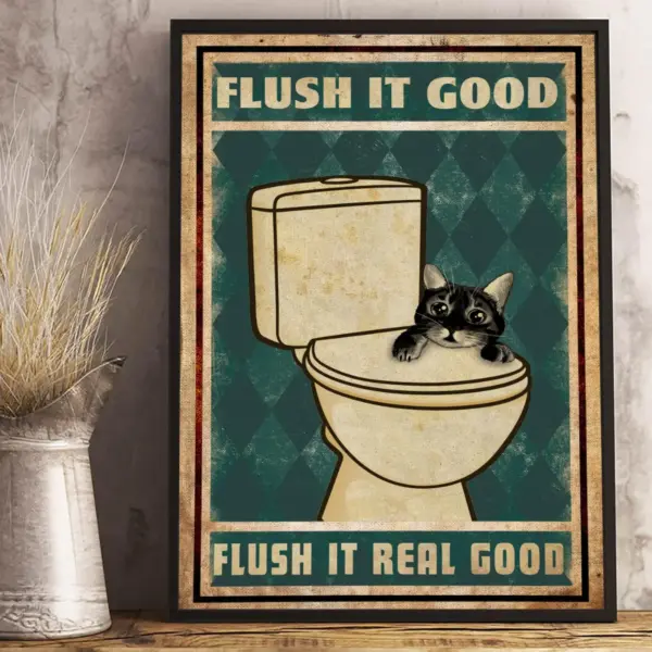 Cat Lover Poster Home Decor Wallart Art Flush It Real Good Gift