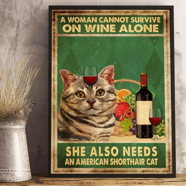 Cat Lover Poster Home Decor Wallart Art She Needs A American Short Hair Cat Gift