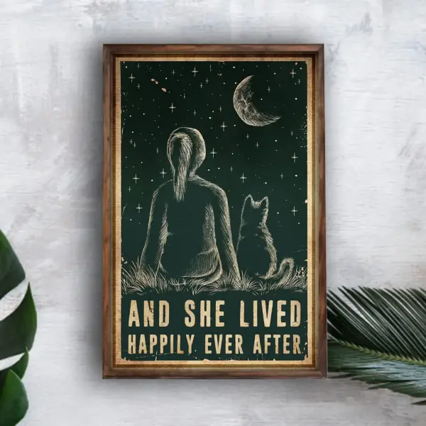 Cat Lovers And She Lived Happily Ever After Poster Wall Art Print Bedroom Home Living Decor Poster