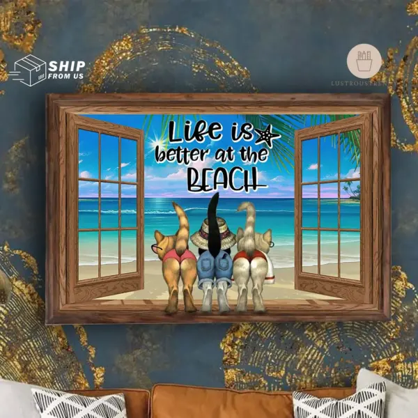 Cat Lovers Gifts Cat At Beach Window View Poster Life Is Better At The Beach Poster Wall Art Print Home Living Decor Poster
