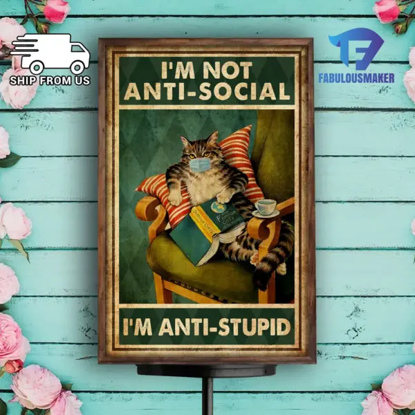 Cat Lovers I M Not Anti Social I M Anti Stupid Poster Social Distancing Quarantine Poster Home Living Decor Poster
