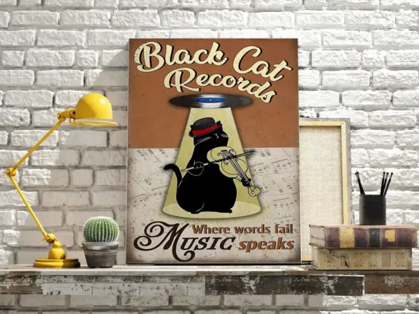 Cat Lovers Poster Black Cat Records Where Words Fail Vertical Poster Cat Vertical Art Print Black Cat Art Wall