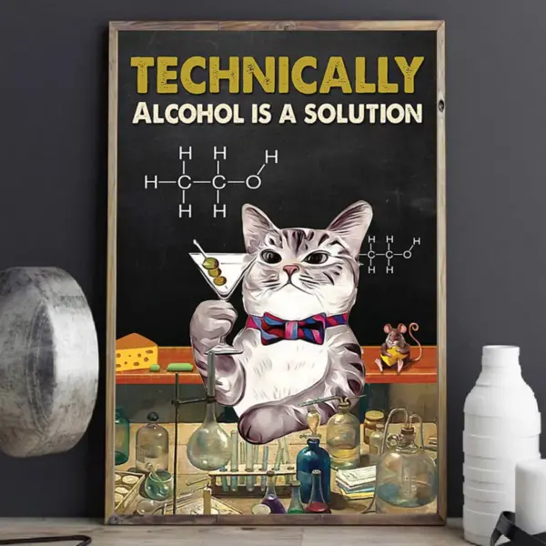 Cat Lovers Technically Alcohol Is A Solution Poster No Frame Cat Lover Funny Poster Chemical Science Scientist Wall Decor Print Art