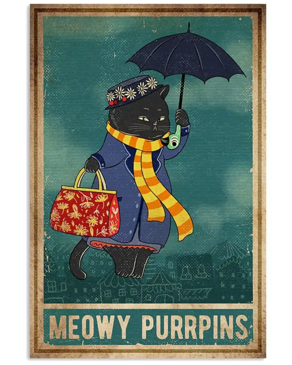 Cat Meowy Purrpins Vertical Poster Funny Cat Baking Art Cat Lover Gift