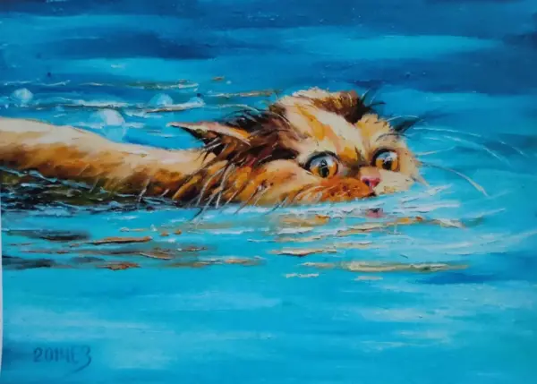 Cat Oil Painting Original Animal Artwork Pets Canvas Oil Art Ginger Cat Poster Giclee Jpg Print With Liquid Glass