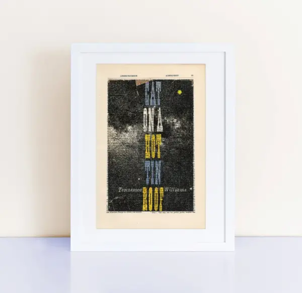 Cat On A Hot Tin Roof By Tennessee Williams Print On An Antique Page Book Cover Art