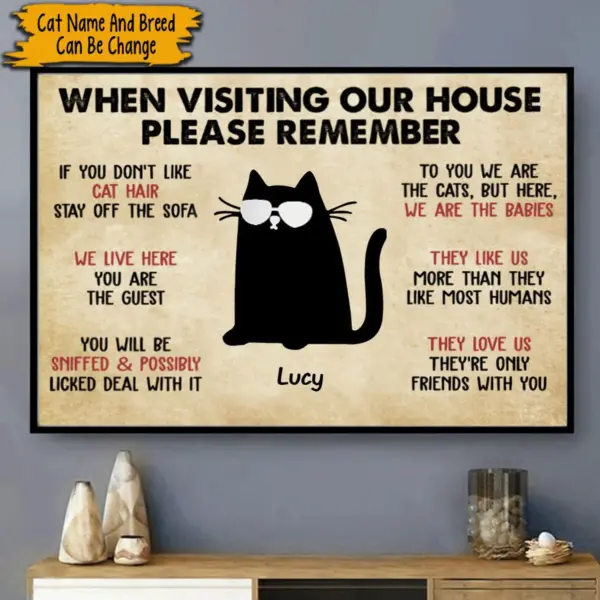 Cat Personalized When Visiting Our House Please Remember Poster We Live Here You Are Guest Decor Cat Lover Gift Wall Art