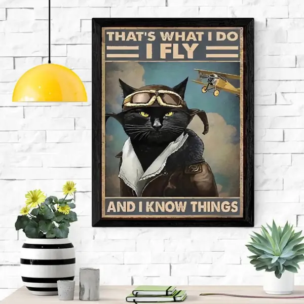 Cat Pilot That S What I Do I Fly And I Know Things Poster Black Cat Poster Cat Vintage Poster Cat Lover Gift