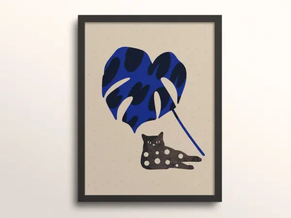 Cat Plant Wall Art Printable Botanical Art Monstera Leaf Print Polka Dot Plant Print Instant