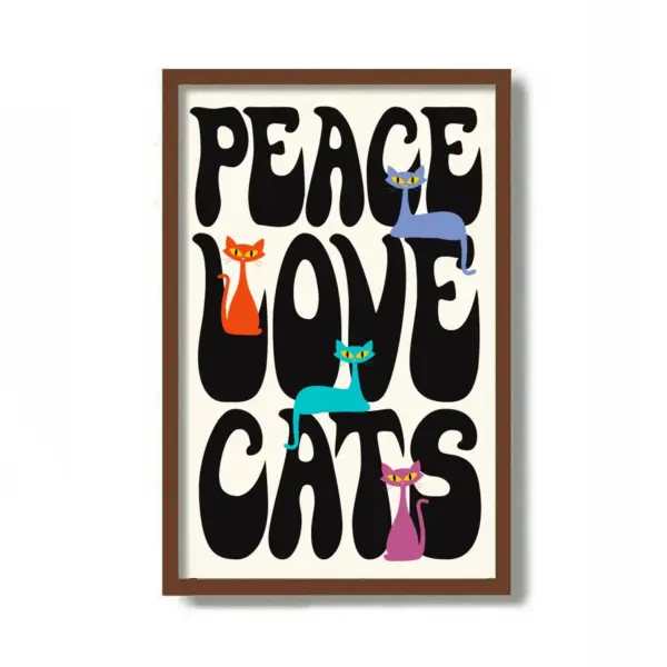 Cat Pop Art Mid Century Modern Art Couples Gift Hippie Decor Black Cat Art Print Boho Decor Cat Lover Gift Tuxedo Cat Psychedelic