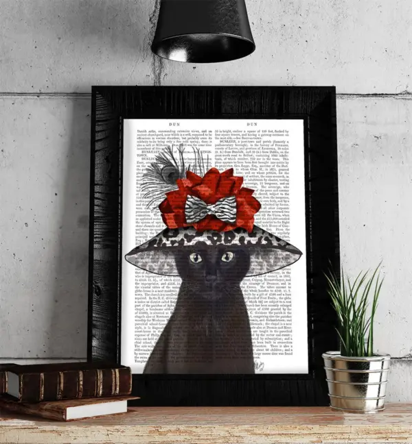 Cat Portrait Fabulous Hat Black Cat Print Funny Cat Gift Birthday Gift For Mom Anniversary Gift Hostess Gift Whimsical Decor Gift Poster