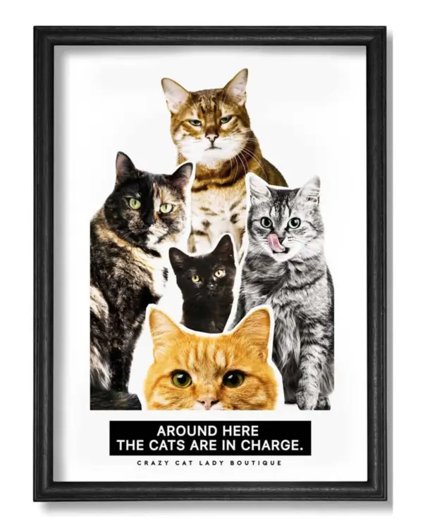 Cat Poster Around Here The Cats Are In Charge Colour Cat Lover Gift