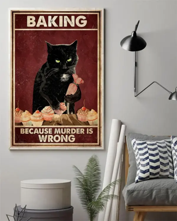 Cat Poster Black Cat Poster Chef Cat Poster Baking Because Murder Is Wrong Cat Baking Cake Home Signs Cat Lovers Gift Poster No Frame