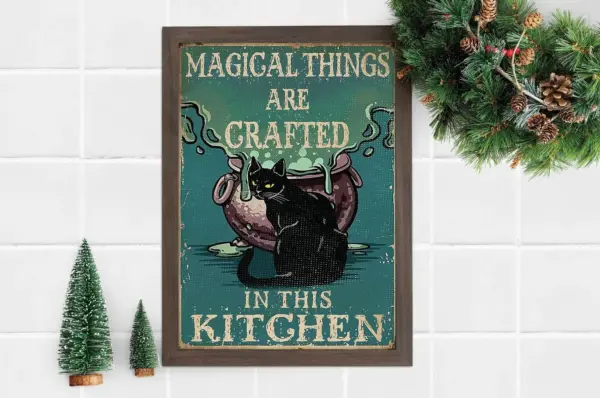 Cat Poster Black Cat Poster Magical Things Are Crafted In This Kitchen Poster Cat Wall Hanging Kitchen Decor Poster