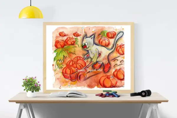 Cat Poster Cat Harvesting Pumpkins Wall Art Print Collection Poster Unique Funny Illustration Garden Lover Poster Cat Lover Poster