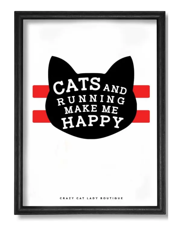 Cat Poster Cats And Running Make Me Happy Cat Lover Gift Running Mental Health Mind Cats Protection Fitness Gym
