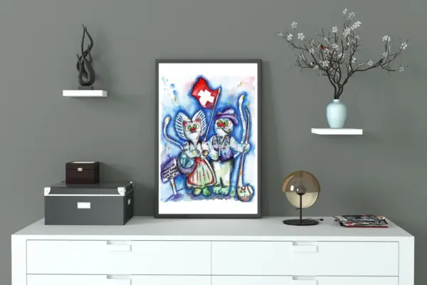 Cat Poster Cats In Switzerland Illustration Wall Art Collection Poster Unique Funny Poster Swiss Lover Print Gift For Traveler