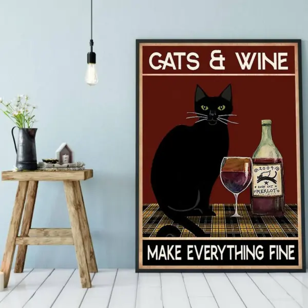 Cat Poster Cats Wine Make Everything Fine Black Cat Art Print Funny Cat Wall Art Wine Lover Gift Love Cat Print Best Gifts Ever