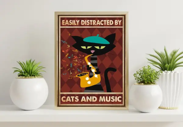 Cat Poster Easily Distracted By Cats And Music Poster Funny Cat Dad Art Living Room Decor Gift For Music Lovers Cat Lover Poster