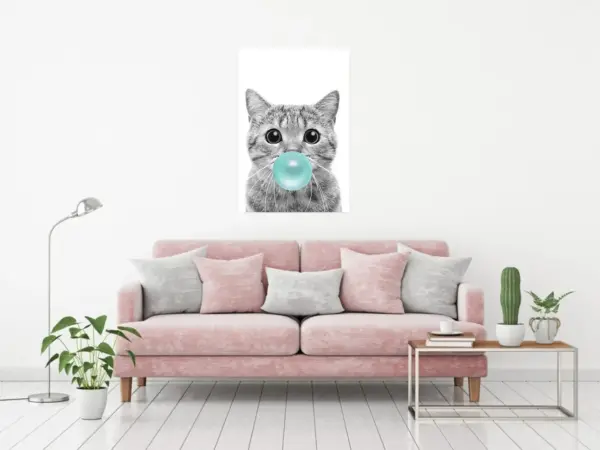 Cat Poster For Living Room Decor Bubble Gum Poster Decor Cat Lovers Gifts Cat Poster Prints Cat Blowing Bubble Gum Printed Art