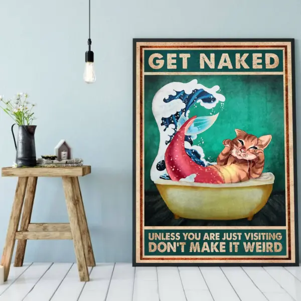Cat Poster Get Naked Unless You Are Just Visiting Don T Make It Weird Cat Bathroom Signs Cat Mermaid Poster Funny Cat Wall Art