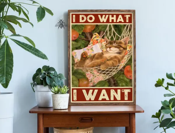 Cat Poster I Do What I Want Funny Cat Art Print Retro Cat Poster Lazy Cat Poster