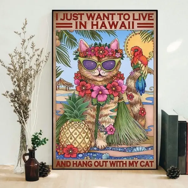 Cat Poster I Just Want To Live In Hawaii And Hang Out With My Cat Gift For Birthday Anniversary