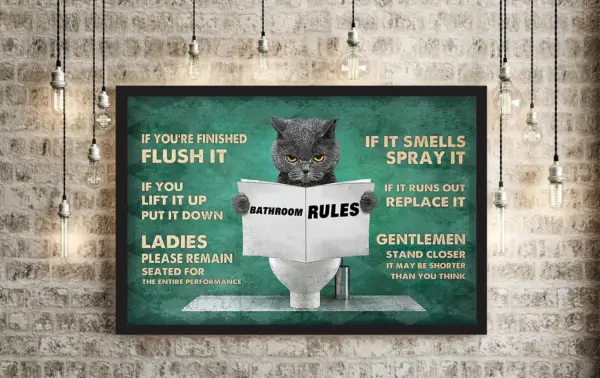 Cat Poster If You Re Finished Flush It Bathroom Rules Print Funny Bathroom Decor Cat Lover Gift Love Cat Poster Best Gifts Ever