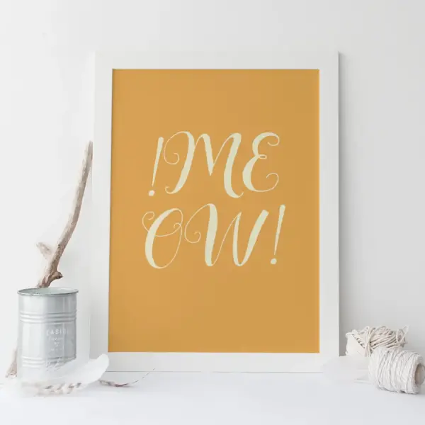 Cat Poster Meow Poster Cat Art Cat Print Orange Typographical Wall Art High Quality Giclee Print Cats Kitten Ikea Ribba Frame Ready