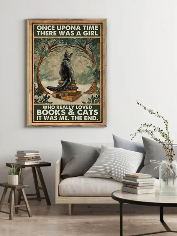 Cat Poster Once Upon A Time There Was A Girl Who Really Loved Books Cats Cat Artwork Teacher Gift Cat Lover Gift Book Wall Decor