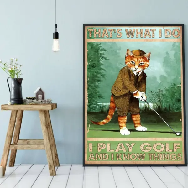 Cat Poster That S What I Do I Play Golf And I Know Things Funny Cat Wall Art Cat Golf Art Prints Golfing Cat Poster Vintage Style Art