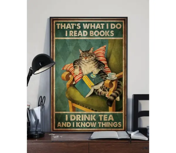 Cat Poster That S What I Do I Read Books I Drink Tea And I Know Things Poster Books Lovers Gift Funny Cat Print Love Reading Wall Art