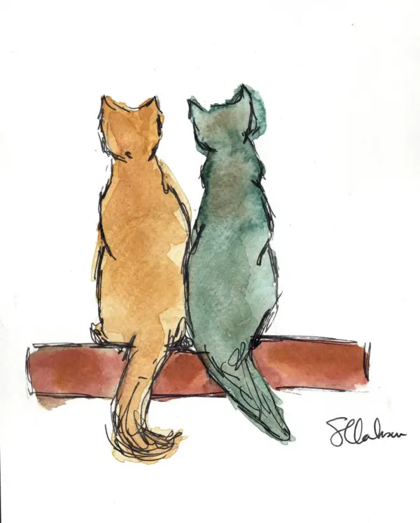 Cute Cat Couple Sketch Wall Art - Pet Lover Gift