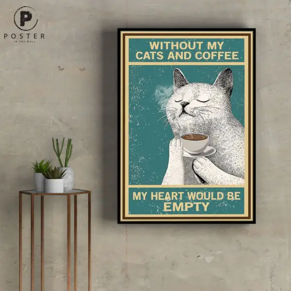 Cat Poster Without My Cats And Coffee My Heart Would Be Empty Poster Funny White Cat Art Cat Lover Gift Wall Decoration Best Gift