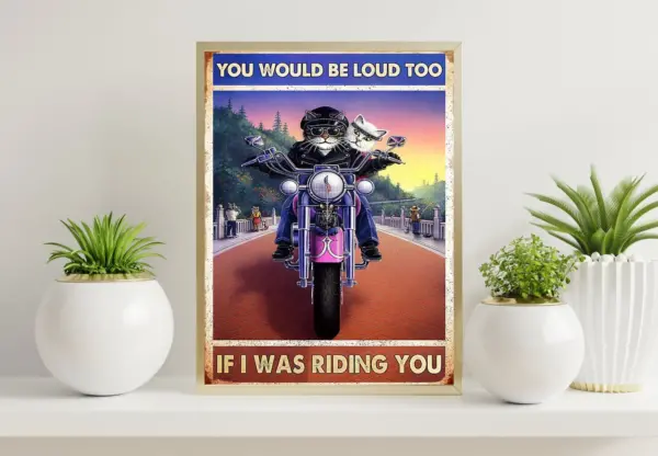 Cat Poster You Would Be Loud Too If I Was Riding You Poster Funny Cat Biker Art Gift For Lovers Motorcycle Art Wall Art Bike Lover