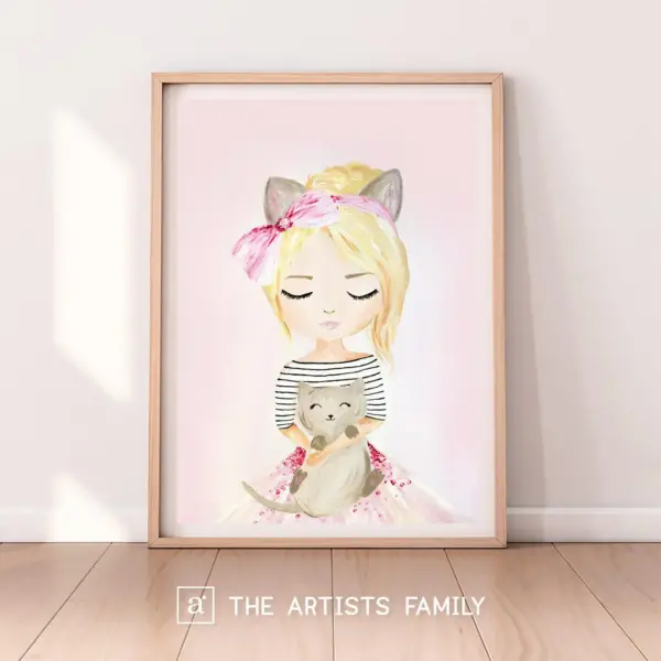 Cat Princess Downloadable Prints Pink Wall Art Nursery Decor Painting Illustration Sleeping Baby Kids Girls Room Printable Blush Sweet