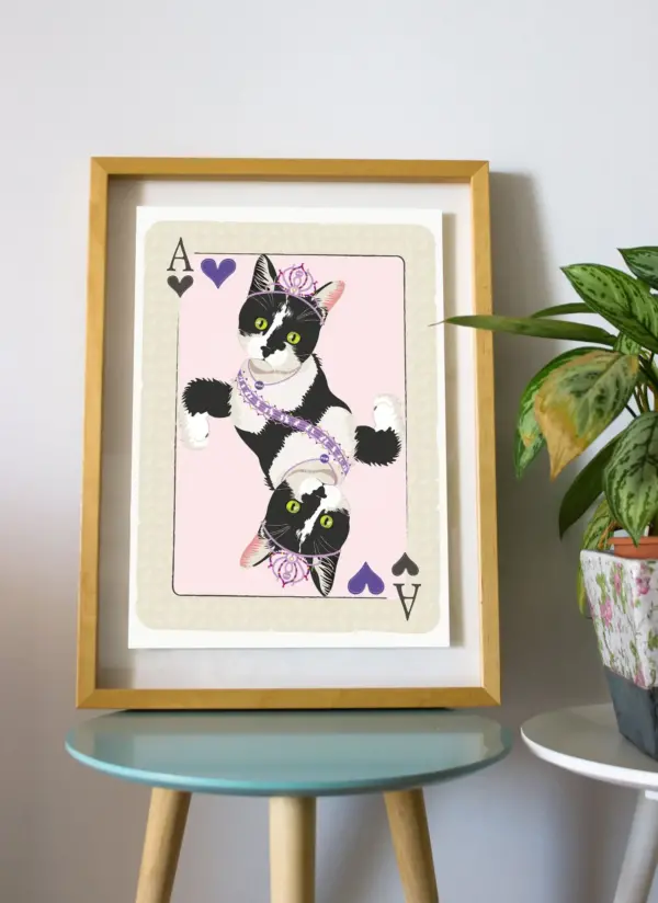Cat Print Pet Art Tuxedo Cat Playing Card Cat Cat Ace Cat Lover Print Cat Poster Custom Pet Cat Illustration Personalised Pet Art