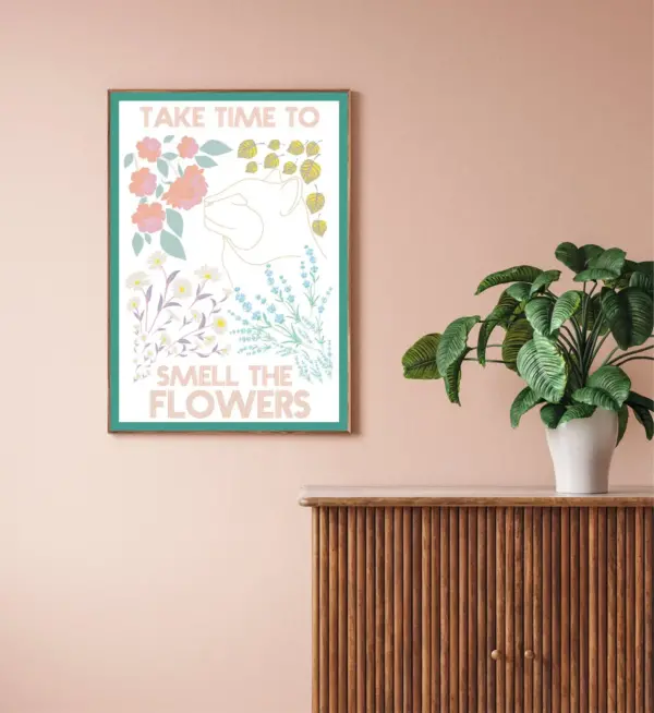 Cat Print Quote Smell The Flowers Inspirational Cat Lover Gift Floral Wall Art